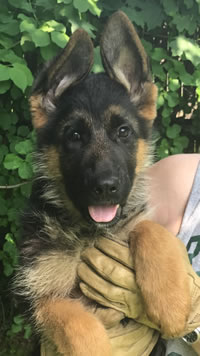 We have several exceptional quality pups available to the discerning buyer from the World's finest bloodlines including the World Young Sieger and North America's youngest VA (Excellent-Select) male. They have very promising structure and incredible temperaments. They're affectionate and highly intelligent. Call us for details. |