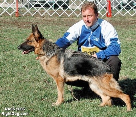 V1 Reggae von Wilhendorf, SchH2, KKL1(OFA). Reggae has been V1 after making SG5 at the USA Sieger show while her sister Rita made Youth Siegerin. Reggae has been V6 at the USA Sieger Show and always turns in one of the best Protection Performances of any dog, male or female at the Sieger Show. The helpers of the 2006 USA Sieger Show gave her the award for best performance! Reggae is a top producer out of 2X World Sieger Yasko v Farbenspiel and VA1 North American Siegerin Whitney aus Agrigento.