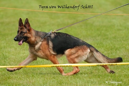 VA Tyra von Wilhendorf, SchH3, KKL1-a(normal). Tyra was North American Young Dog Siegerin under current SV National Breed Warden Reinhardt Meyer. She was also made SG17 in Germany! She has made multiple V1 and Regional Siegerin. Her career was culminated by her Canadian Vice Siegerin title. Her daughter Rhapsody has been High "V'" rated. Her daughter Conni is USA Vice Youth Siegerin and her son Clemenza is SG3 at the USA Sieger Show. Tyra is a daughter of Wallace aus Agrigento and multiple VA Jicy de la Taspelmatt, V9 in Germany.